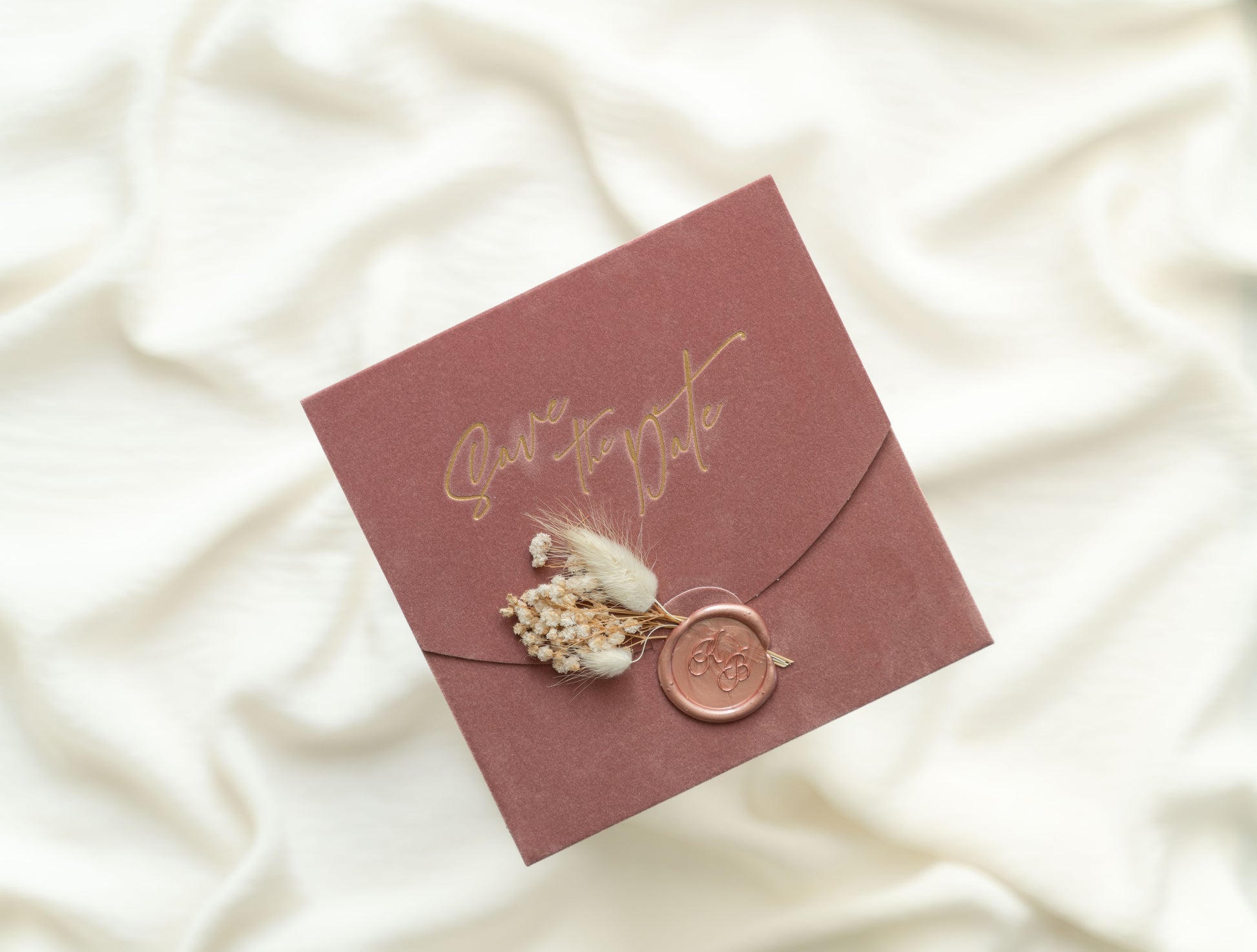 Elevate your special day with our Square Velvet Wedding Invitation. The luxurious velvet adds a touch of sophistication and the customizable design allows you to make it truly your own. The wax seal adds an elegant finishing touch, making this invitation a true work of art.